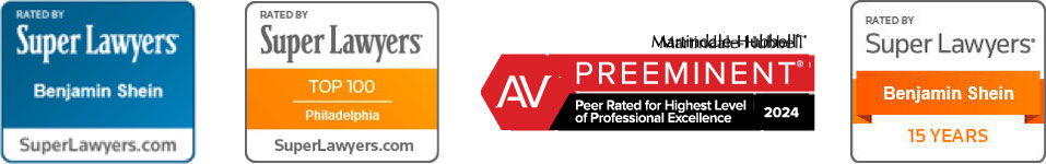 * The awards and accolades displayed on this website were issued to the attorneys, or the entire law firm, by the respective providers of these honors. They are as follows: Super Lawyers®, Martindale Hubbell Peer Review Rated, Philadelphia Top 100, Multi-Million Dollar Advocates Forum. No aspect of these advertisements has been approved by the Supreme Court of New Jersey.